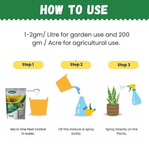 - Foliar Application: Mix 4-5 g per liter of water.