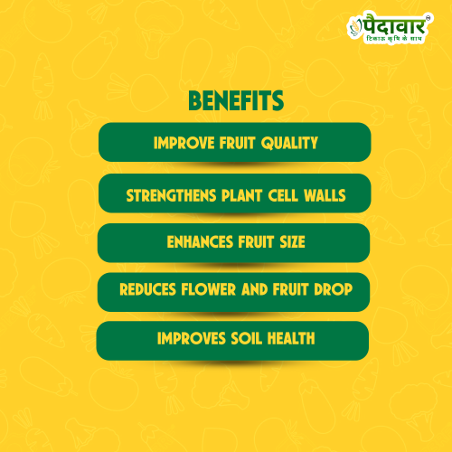 Paidavaar Calcium Nitrate Fertilizer (Ca-18.8%+N-15.5%) is a highly water soluble, quick-acting, dual-nutrient fertilizer that provides plants with readily available calcium and nitrate nitrogen. It is essential for strengthening plant cell walls, improving fruit firmness, preventing physiological disorders like blossom end rot and bitter pit, and ensuring steady plant growth. Suitable for fertigation, foliar spray, and soil application across various crops.