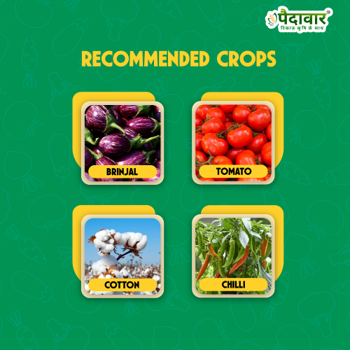 Targeted Pests: Effective against aphids, thrips, whiteflies, fruit and shoot borers, leaf miner, mealybugs, caterpillars, spider mites, cutworms, bollworms, armyworms, scale insects, and other sucking and chewing pests.