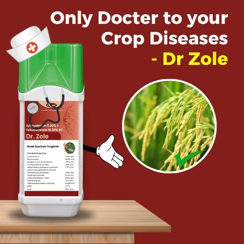 Katyayani Dr Zole is a systemic fungicide combining Azoxystrobin 11% and Tebuconazole 18.3% SC. It offers dual-action protection by inhibiting fungal respiration and disrupting cell membrane synthesis, effectively controlling a wide range of diseases in crops. Its suspension concentrate (SC) formulation ensures easy application with long-lasting results.