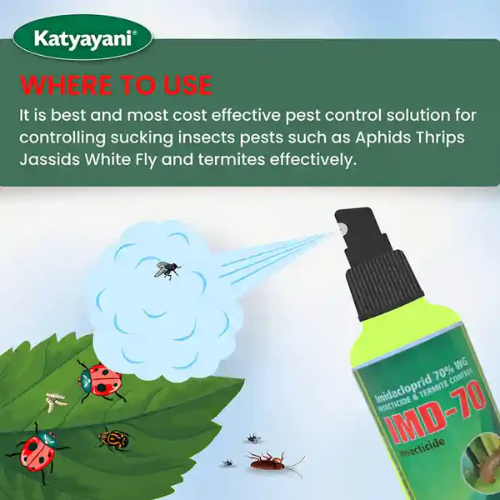 Target Crops: Katyayani IMD-70 is effective on crops such as cotton, rice, okra, cucumber, tomato, potatoes, and various other vegetable crops.