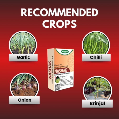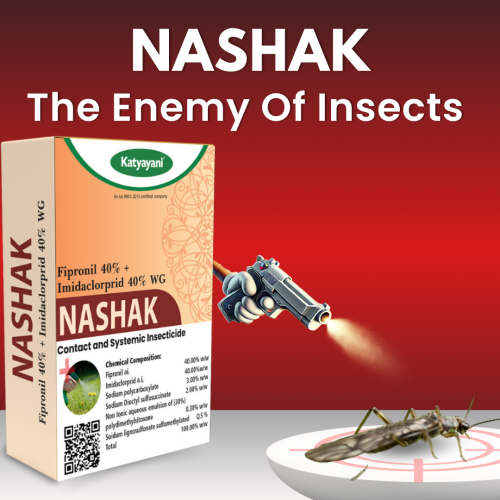 Katyayani Nashak is a powerful insecticide formulated with Fipronil and Imidacloprid, combining dual action to deliver effective pest control. It disrupts the central nervous systems of insects, providing long-lasting protection for various crops against a broad spectrum of pests.