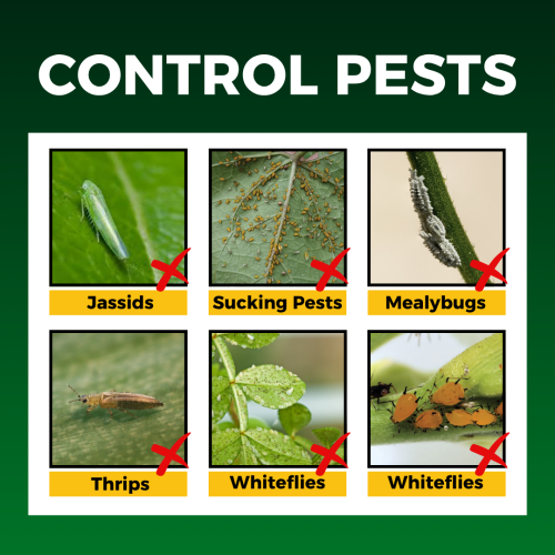 • Dual Action: Provides both contact and systemic control, targeting pests inside the plant and on its surface.