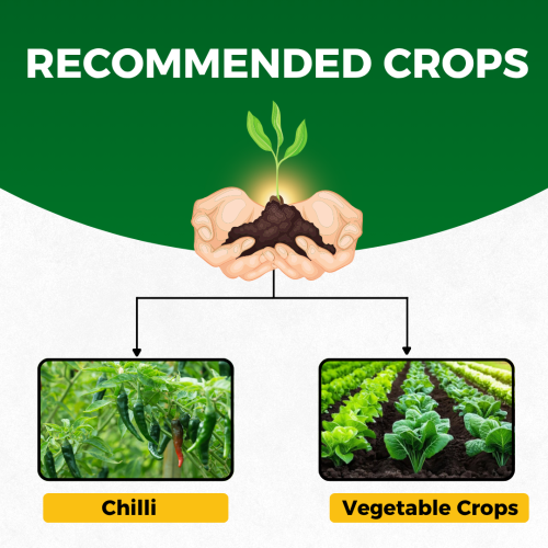 Sarvashakti is safe for use on all crops, including chilli and vegetable crops, and is non-toxic to beneficial insects like honeybees and ladybugs. As a biodegradable product, it leaves no harmful residues on the crops, making it an environmentally friendly option.